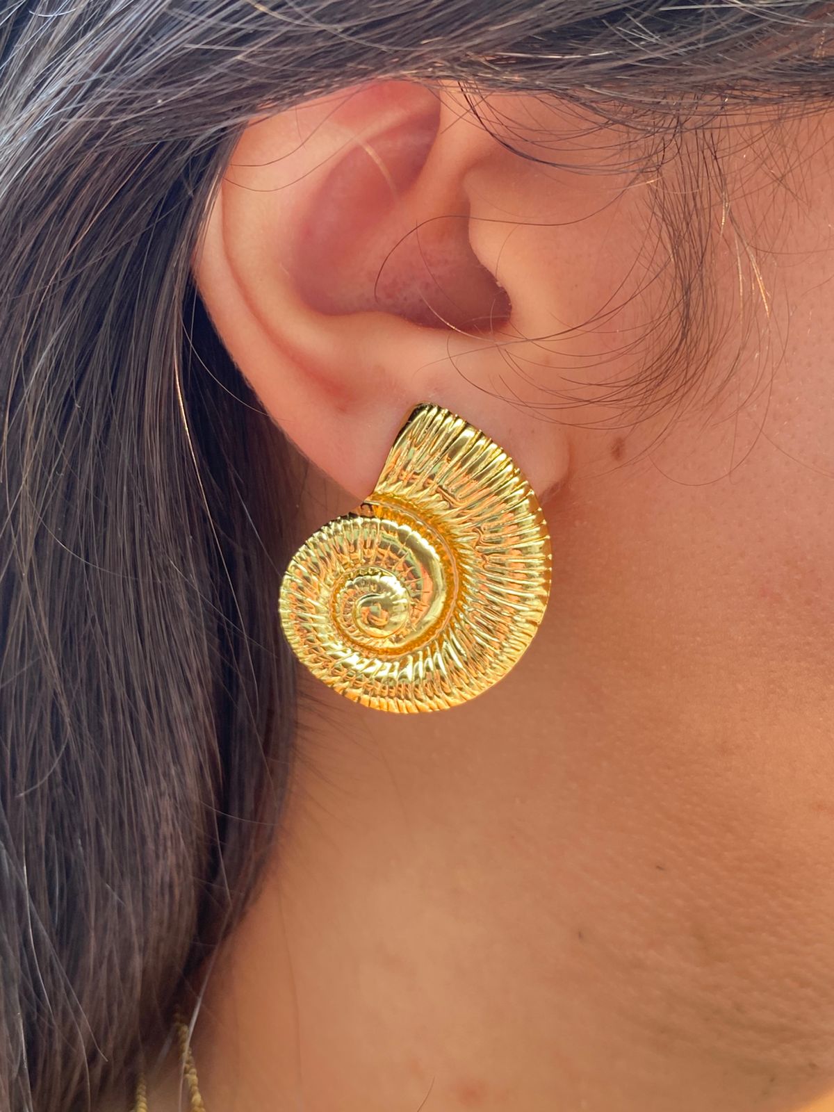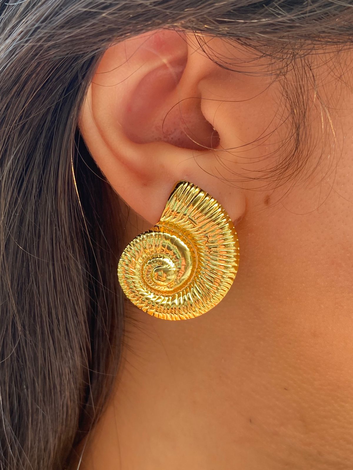 These Golden Helix Earrings feature a striking, textured shell-inspired design that catches the light and elevates any look. Bold yet elegant, they are the perfect power accessory.