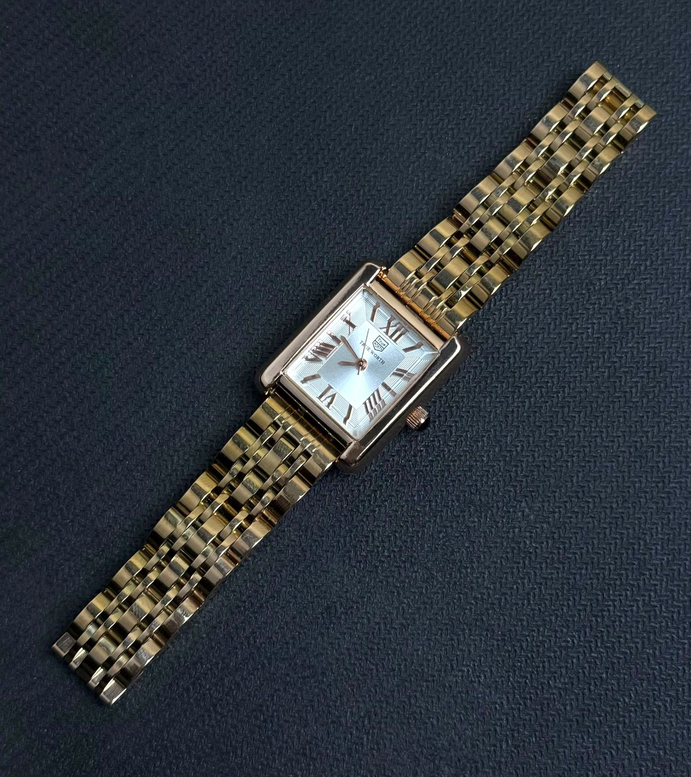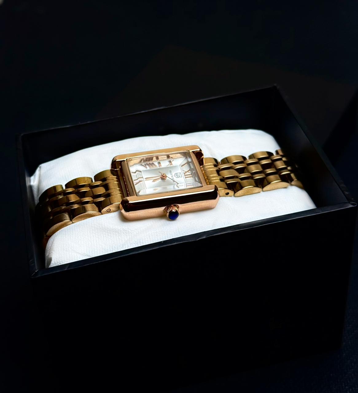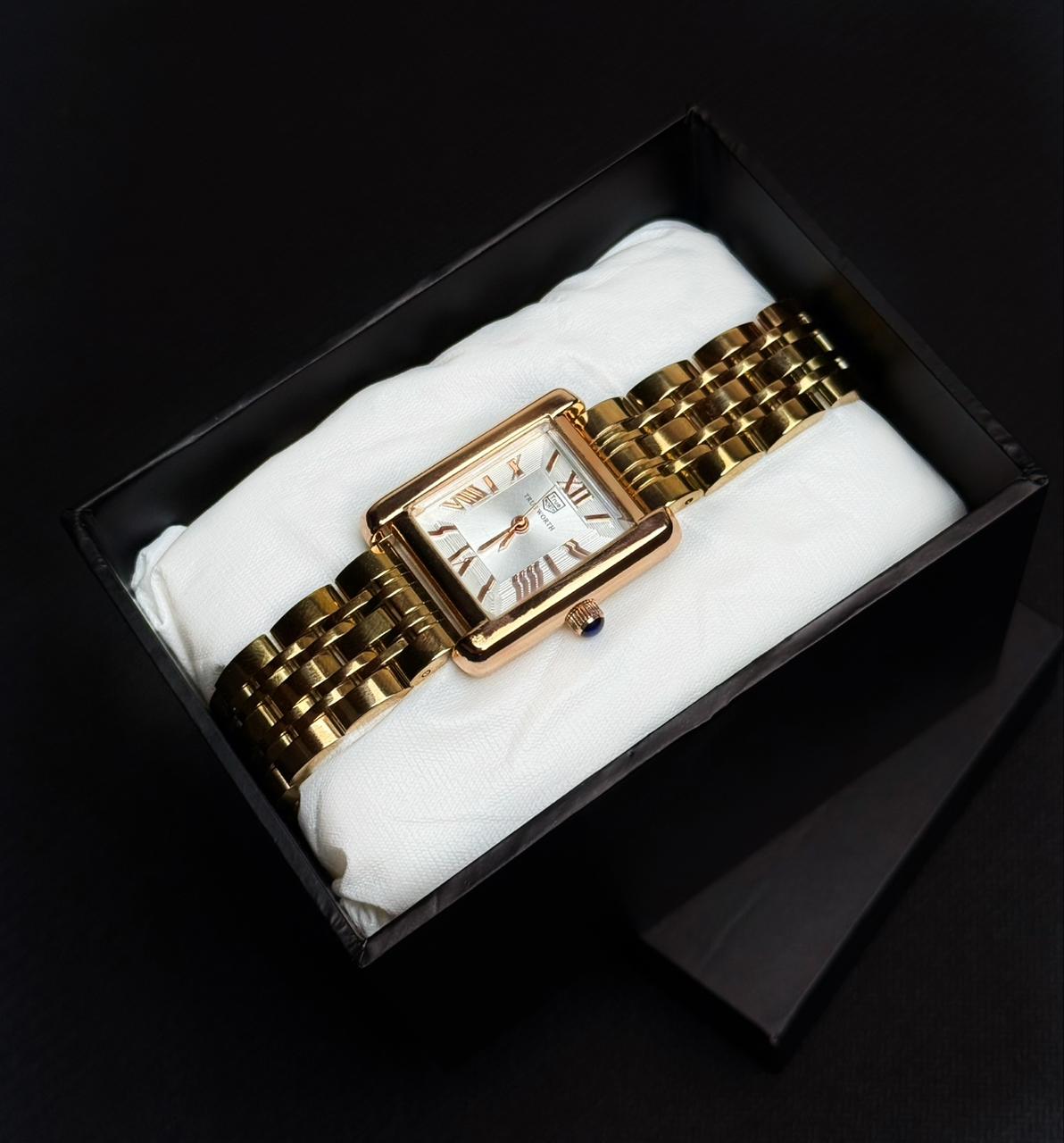 Immerse yourself in the warm glow of pure rose gold, meticulously crafted into a chic, rectangular silhouette that commands attention. This timepiece features a delicate dial with elegant markers, embodying a soft sophistication that complements every moment of your day. It’s more than a watch; it's a whisper of timeless charm. 🎀