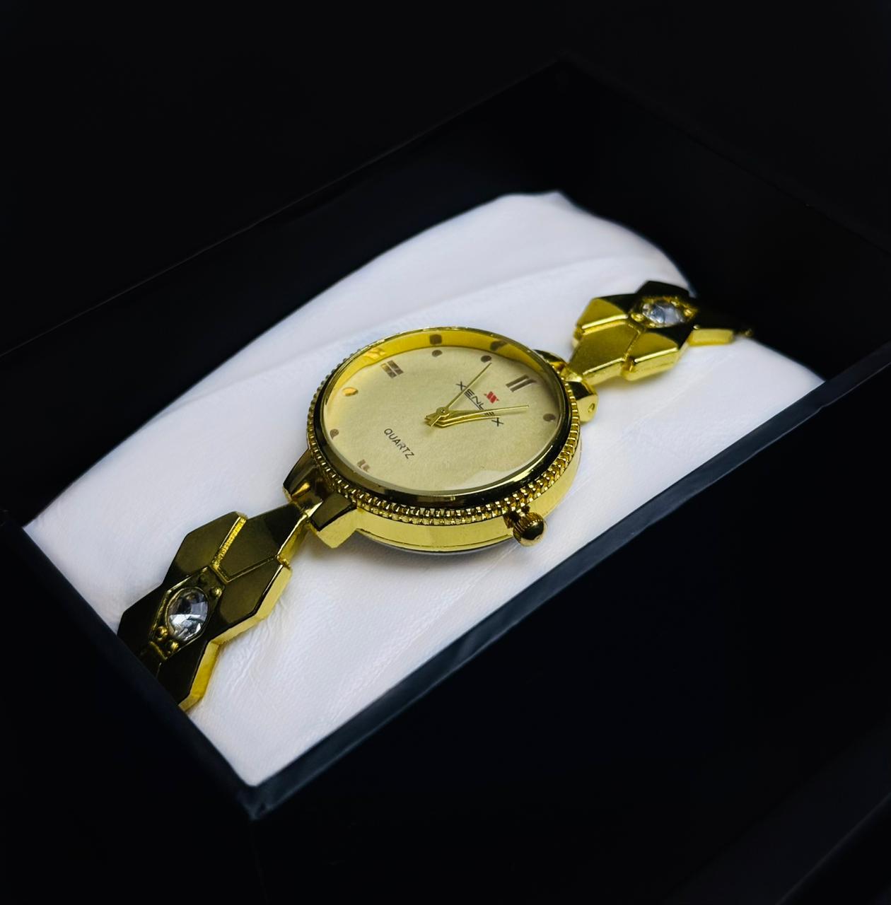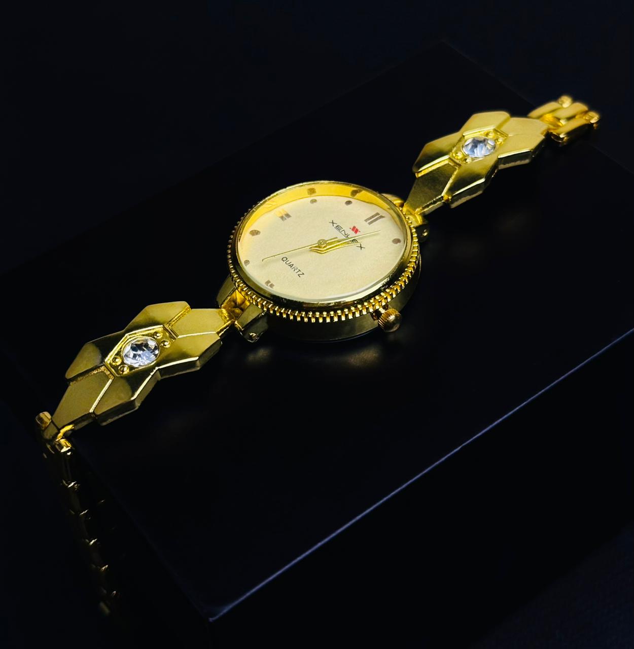 This watch is the perfect minimalist statement, designed with a stunningly thin and refined strap that drapes across your wrist like a piece of bespoke jewelry. Its dainty silhouette and sparkling geometric links create a modern, high-end boutique look without the bulk of a typical timepiece. The Timepiece comes with A 2 Years Money Back Wear Warranty 💯 Premium Packaging 💯 Pure 22k Gold Plated 💯 Finest Glass Dial 💯 Easily Adjustable Straps for everyone 💯
